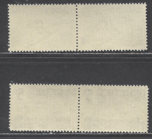 Canada #365i, 368i 5c Deep Ultramarine Skiing, Canoeing, 1957 Recreational Sports Issue, 2 VFNH Identical Pairs,Smooth Paper, Ribbed On Back, Streaky Cream Semi-Gloss Gum, Scarce, As Most Would Have Been Split