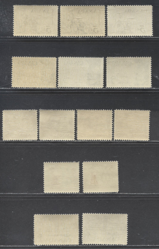 Canada #378-382 5c Various Colours Various Subjects, 1958 La Verendrye - First Assembly Issues, 14 VFNH Singles,Smooth Paper, Ribbed On Back, Streaky And Smooth Cream Semi-Gloss Gum Slightly Different Shades