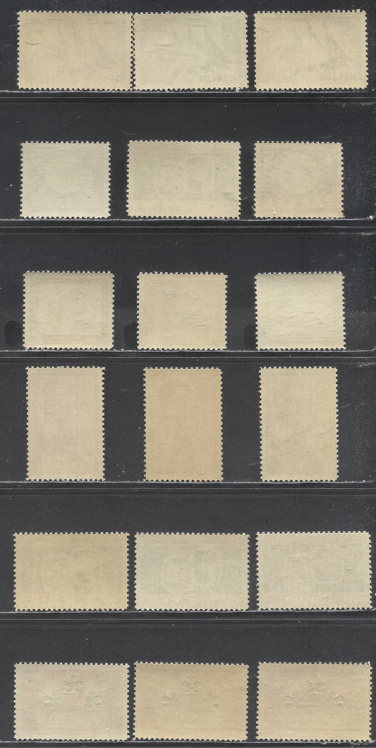 Canada #383-388 5c Various Colours Various Subjects, 1959 Silver Dart - Plains of Abraham Issues, 18 VFNH Singles,Smooth Paper, Ribbed On Back, Streaky And Smooth Cream Semi-Gloss Gum Slightly Different Shades