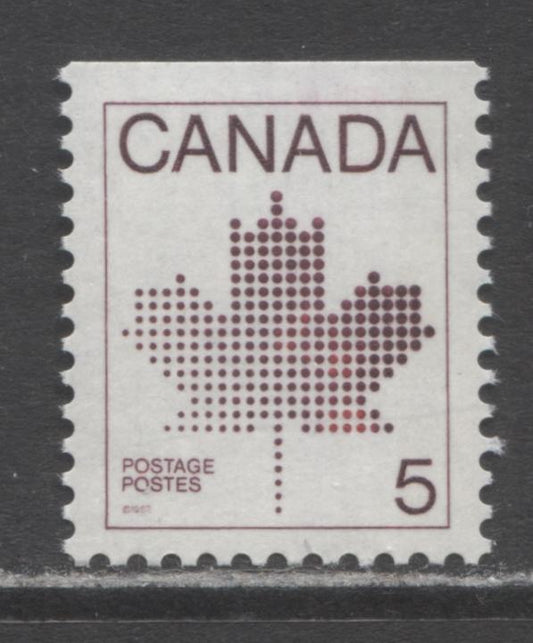 Canada #940T1 5c Purple Maple Leaf, 1982-1987 Booklet Issue, A VFNH Single With G2aR Tagging Error On Lf/LF Paper