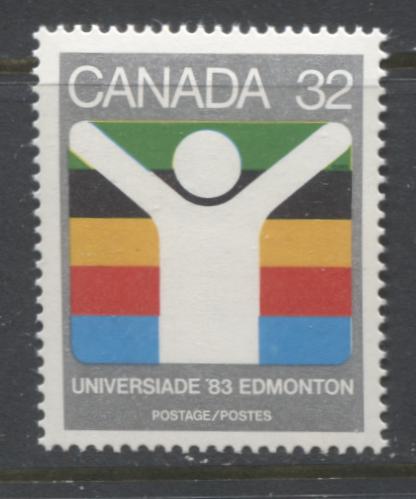 Canada #981-982 32c & 64c Multicoloured Universiade Edmonton Symbol, 1983 World University Games Issue, 8 VFNH Singles, NF/NF, DF/DF, and DF/LF Papers, Pale and Deeper Gold Shades on 64c