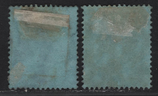 Norway SC#16a 1s Dark Green & Dark Yellow Green Post Horn & Crown, 1872-1875 Post Horn Issue, 2 VG/FOG Singles, Wmk 160, Perf 14.5x13.5, Vertical Crease On Dark Yellow Green
