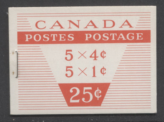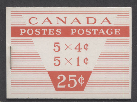 Canada #BK53b 1962-1967 Cameo Issue, A Complete 25c Bilingual Booklet Made Up Of 1c Brown & 4c Carmine, 2 Panes Of 5+Labels, Type II Cover, 1c DF & 4c LF-fl Panes