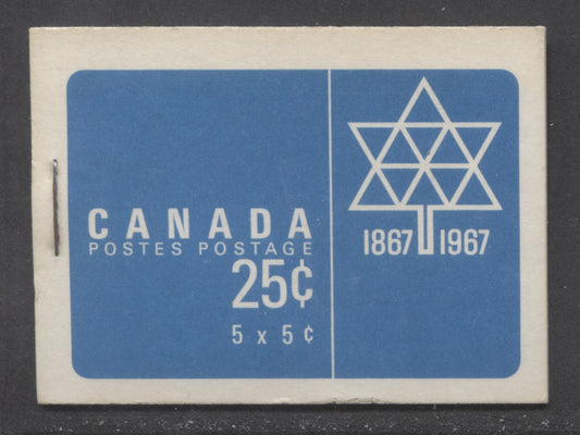 Canada #BK52e 1962-1967 Cameo Issue, A Complete 25c Bilingual Booklet Made Up Of 5c Blue, One Pane Of 5+Label, Centennial Cover With DF Interleaf, DF Pane