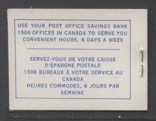 Canada #BK53bvar 1962-1967 Cameo Issue, a VFNH Booklet Containing 1c & 4c Panes of 5, Type II 'Local 4c First Ounce' Cover, DF Panes, HB Interleaving