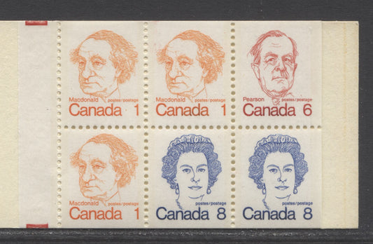 Canada #BK74avar 1c, 6c, 8c Orange - Royal Blue John A. Macdonald - Queen Elizabeth II, 1973-1978 Caricature Issue, A VFNH Complete Booklet HB11 Cover, DF Pane, Self-Sealer