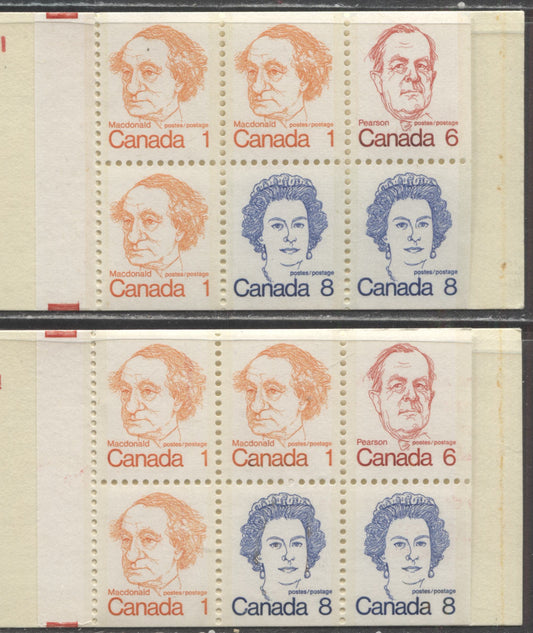 Canada #BK74a, l var 1c, 6c, 8c Orange - Royal Blue John A. Macdonald - Queen Elizabeth II, 1973-1978 Caricature Issue, 2 VFNH Complete Booklets DF Cover, DF & LF Panes, Clear Sealer, Scarcer Than Self-Sealer