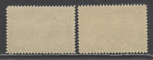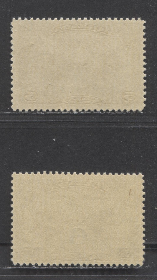 Canada #C4var 6c On 5c Olive Brown Mercury & Globe, 1932 Ottawa Economic Conference Issue, 2 Fine NH Singles Showing Extra Island Off Greenland & One Without, Both With Semi-Gloss Cream Gum