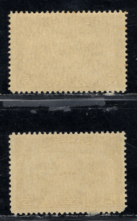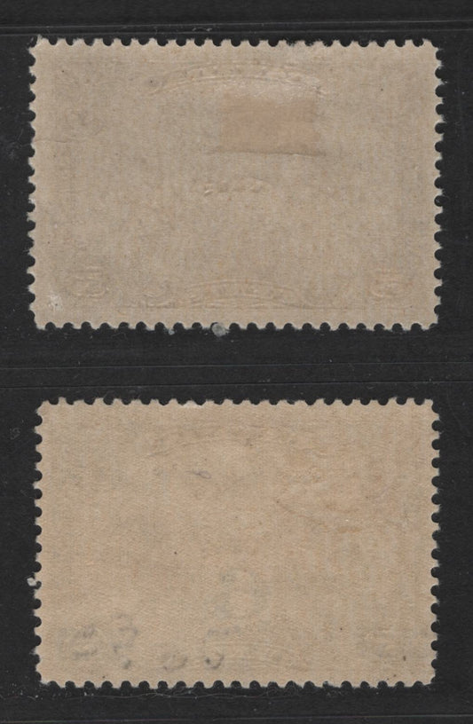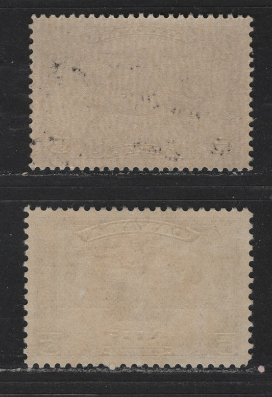 Canada #C1 5c Olive Brown & Pale Olive Brown Two Winged Figured & Globe, 1928 Air Mail Issue, 2 FNH Singles With Smooth & Streaky Gums