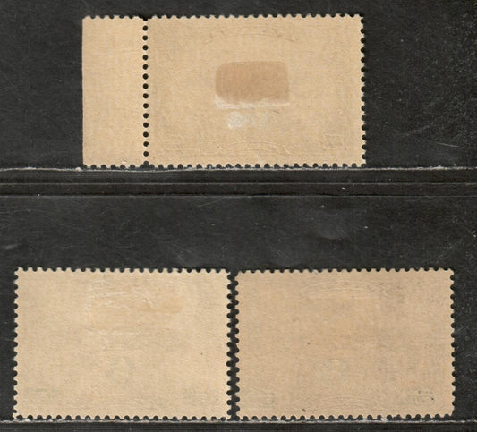 Canada #C3 5c Deep Olive Brown Winged Figures Against Globe, 1932 Air Mail Issue, 3 VFOG Singles With Streaky Gum, Surcharge Shifted Left And Right, With Normal For Comparison