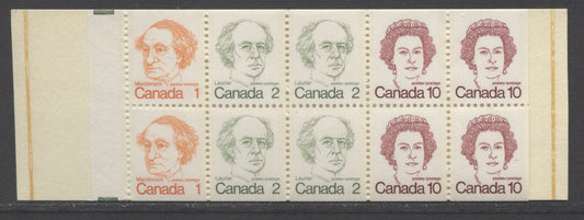 Canada #BK74lvar 1c, 6c, 8c Pale Orange - Royal Blue John A. Macdonald - Queen Elizabeth II, 1973-1978 Caricature Issue, A VFNH Complete Booklet HB11 Cover, MF Pane, Self-Sealer