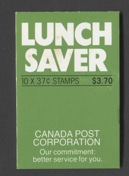 Canada #BK97b 1988 Parliament Buildings Issue, A 37c Multicolored Booklet, DF/DF Pane, MF-fl Cover, Coated Harrison Paper, Outside Cover Lunch Saver, Inside Cover Pay Your Bills, AP Printing, Perf 13.3 x 14