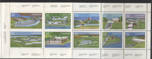 Canada #BK86 1983 Canadian Forts Issue, Complete $3.20 Booklet, Coated Abitibi Paper, Low Fluorescent Paper, 4 mm GT-2 Tagging