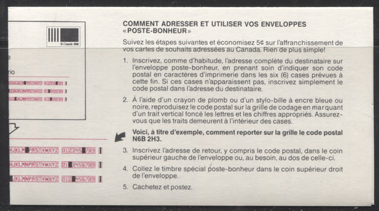 Canada #BK98c 1988 Parliament Buildings Issue, A 37c Multicolored Booklet, DF Pane & LF Cover, Rolland Paper, Outside Cover Stamp Pack, Inside 'Would it be more convenient..?", AP Printing, Perf 13.3 x 14, No Horizontal Tag Bar On Tab