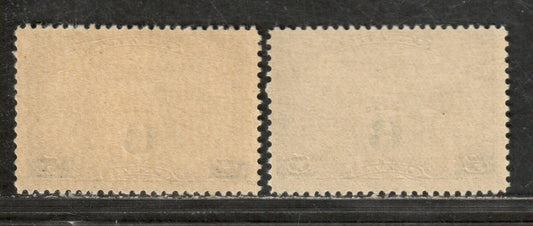 Canada #C4var 6c On 5c Olive Brown Mercury & Globe, 1932 Ottawa Economic Conference Issue, 2 Fine OG Singles Extra Island Off Greenland, Semi-Gloss Cream Gum, Surchage Shifted Both Left & Right, Semi-Gloss Cream Gum