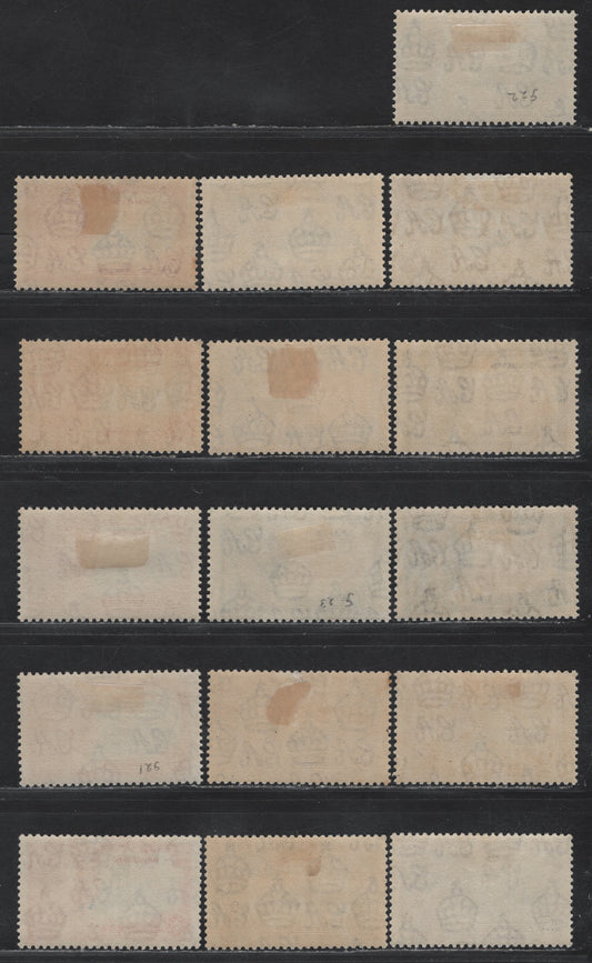 Welcome to our weekly unreserved auction! This week we offer material from three specialized areas as well as some general higher value worldwide pre-1950. The first of these is the fifth and final instalment of my personal specialized collection of the 1935 Silver Jubilee Omnibus issue of the British Empire. Scott glosses over this issue, so it may surprise collectors to learn that these stamps replaced ALL colonial issues for a year after they were issued, at least for the face value of the stamps issued, and so in order to supply the demand for the colonies, up to 4 or 5 printings were made. Three printing firms: Waterlow, De La Rue and Bradbury Wilkinson were all involved and each had their own paper, their own method of perforating, and their own colours. In all cases, significant shade differences can be found, and there are a myriad of different constant and non-constant plate flaws that can be collected, as well as re-entries. Gibbons only lists a handful of these that could be successfully plated. You would do well to watch my You Tube videos about these which you can access here.