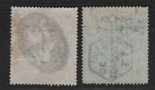 Great Britain SG#175, 178 2/6d Lilac Queen Victoria, 1883-1884 High Values, Wmk Anchor, 2 VG Used Singles One On Distinct Bluish Paper With October 7, 1887 Lombard St. Cancel and The Other On White Paper, Small Sealed Tear On The Bluish Paper