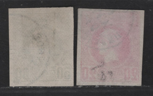 Greece SC#56, 56b 20L Pale Rose, Pink & Deep Carmine Hermes Head, 1880-1882 Large Hermes Head Issue, 3 Very Fine Used Imperf Singles, No Figures On Back, Cream Paper
