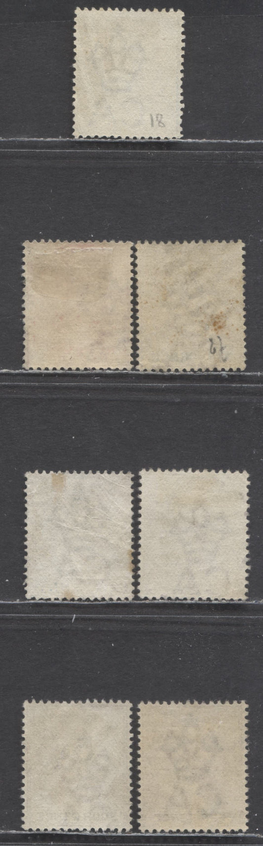Lagos SC#13/39 1887-1901 Queen Victoria Issue, Bar Cancelled Examples, Crown CA Wmks, 7 Fine Used Singles, 2017 Scott Cat. $16.9