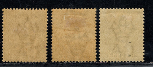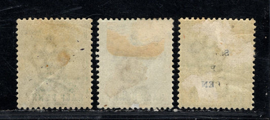 Lagos #21 1/2d Green Queen Victoria, 1884-1886 Queen Victoria New Color Keyplates Issue, 3 F/VFOG Singles Crown CA Wmk, De La Rue Printing, Plate 1 Printings, Different Shades