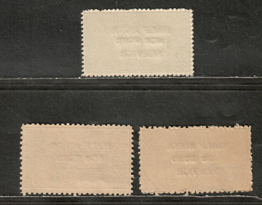 India - Travencore SG#O16, O16a 1/2a On 1ch Yellow Green, 1949-1952 Official "Service" Overprint On Travancore Maharaja's 27th Birthday Issue, 3 VFUN Singles With Various Perfs And Watermarks