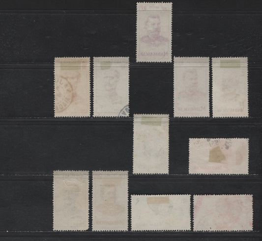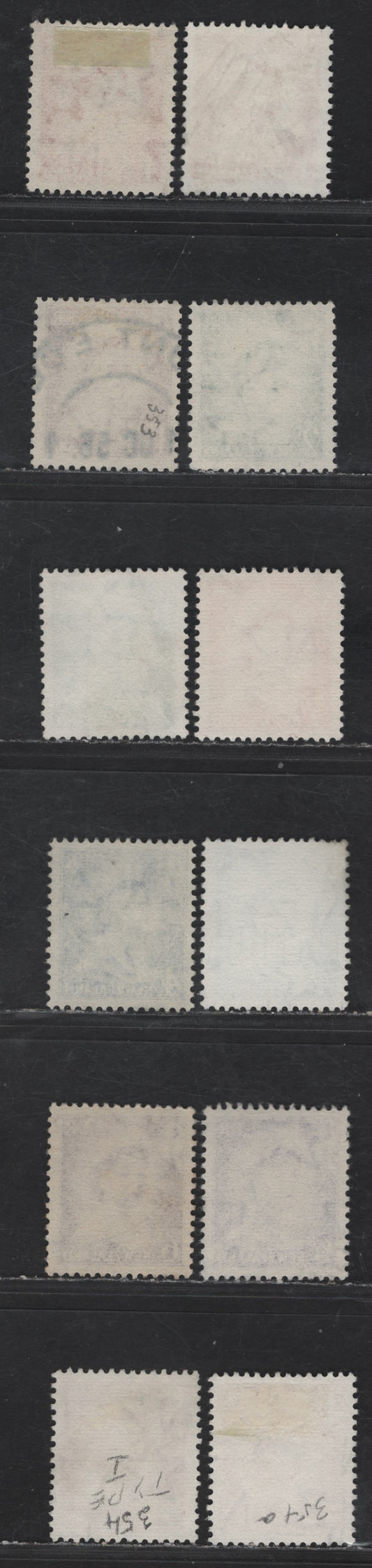 New Zealand #745/808a 1d Orange - 2 1/2d On 3d Vermilion, 1955-1961 Queen Elizabeth II Definitives, Revised Designs Issue, 12 VF Used Singles Both Normal & Opaque Surfaced Papers. Surcharge Includes Both Wide & Narrow Settings