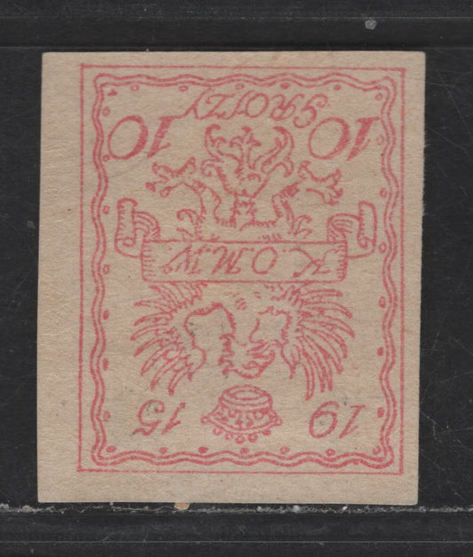 Poland MI#9a 2gr Red & Black Polish Eagle, 1916 Warsaw Local Issue, A VFNH Imperf Single, Printed On Both Sides