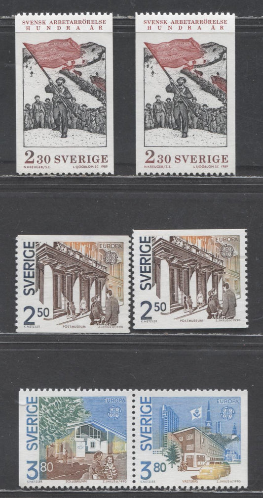 Sweden SC#1735/1812 1989 National Labour Movement - 1990 Europa Issues, On DF, LF and NF Papers, 4 VFNH Singles And A Booklet Pair, Click on Listing to See ALL Pictures, Estimated Value $16