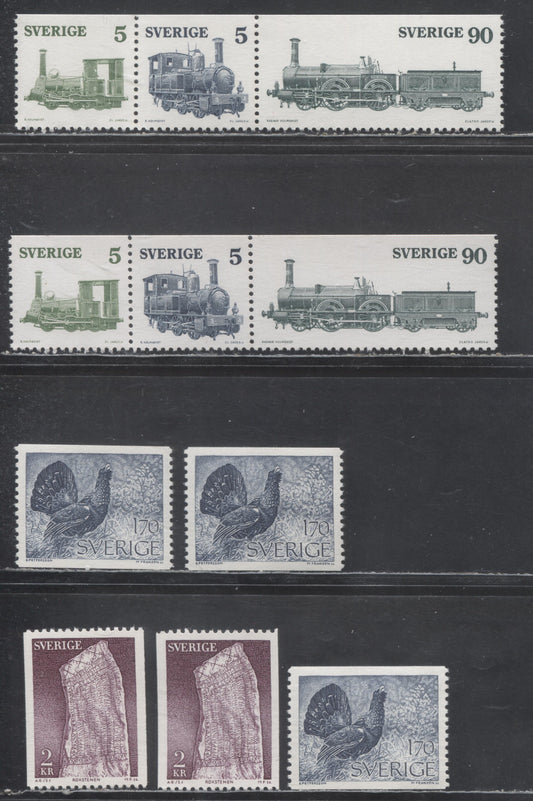 Sweden SC#1119/1136 1975 Capercaille & Rok Stone - 1975 Trains issues, With Strong And Weak Tagging, 11 VFNH Singles, Click on Listing to See ALL Pictures, Estimated Value $15