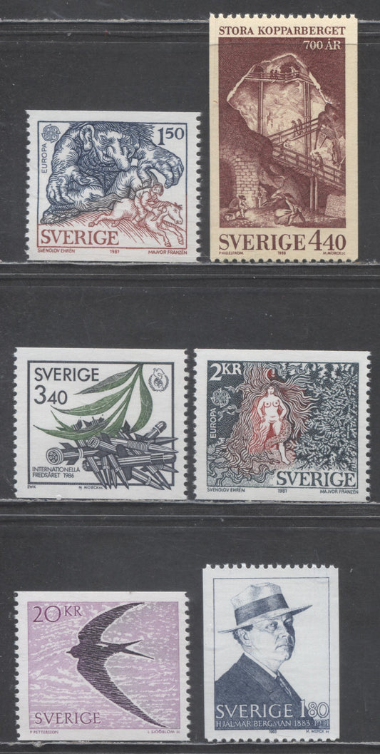 Sweden SC#1352/1703 1981 Europa - 1988 Common Swift Issue, 6 VFNH Singles, Click on Listing to See ALL Pictures, Estimated Value $20