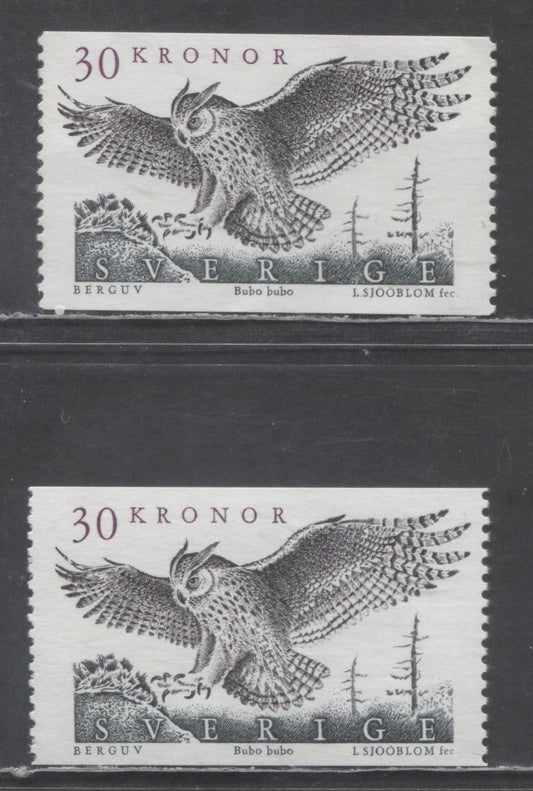 Sweden SC#1761 30Kr Multicoloured 1989 Eagle Owl High Value Definitive Issue, On NF and DF Papers, 2 VFNH Singles, Click on Listing to See ALL Pictures, Estimated Value $25