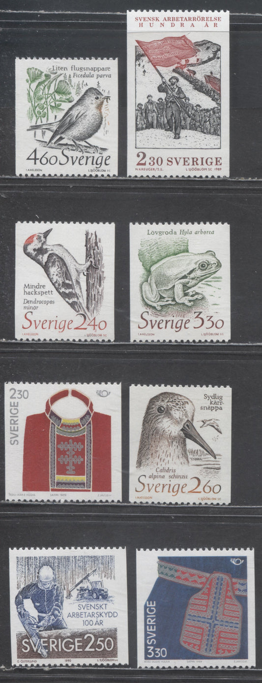 Sweden SC#1723/1809 1989 Endangered Species - 1990 Centenary of Swedish Industrial Safety Issues, With Control Numbers On Back, 8 VFNH Singles, Click on Listing to See ALL Pictures, 2017 Scott Cat. $13.15