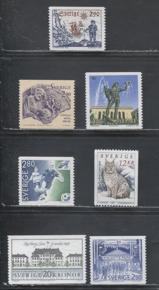 Sweden SC#1876/2033 1991-1992 Palaces High Value Defintive Issue - 1993 Hydrographic Survey Issues, With Control Numbers On Back, 7 VFNH Singles, Click on Listing to See ALL Pictures, Estimated Value $15