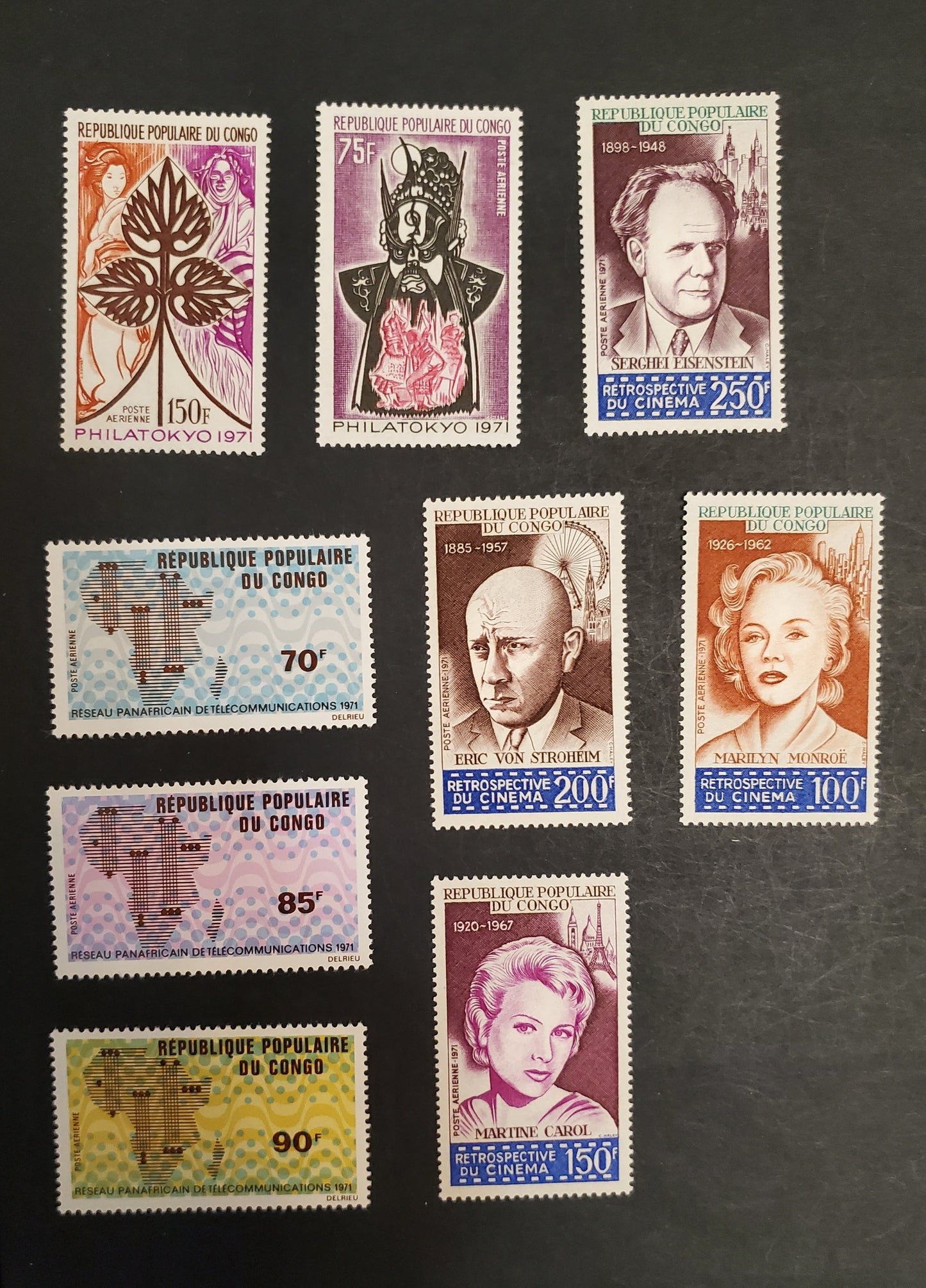 A Peoples Republic Of Congo SC#C107/C121 1971 History Of Motion Pictures - Philatokyo, 9 VFNH Singles, Click on Listing to See ALL Pictures, 2017 Scott Cat. $34.25