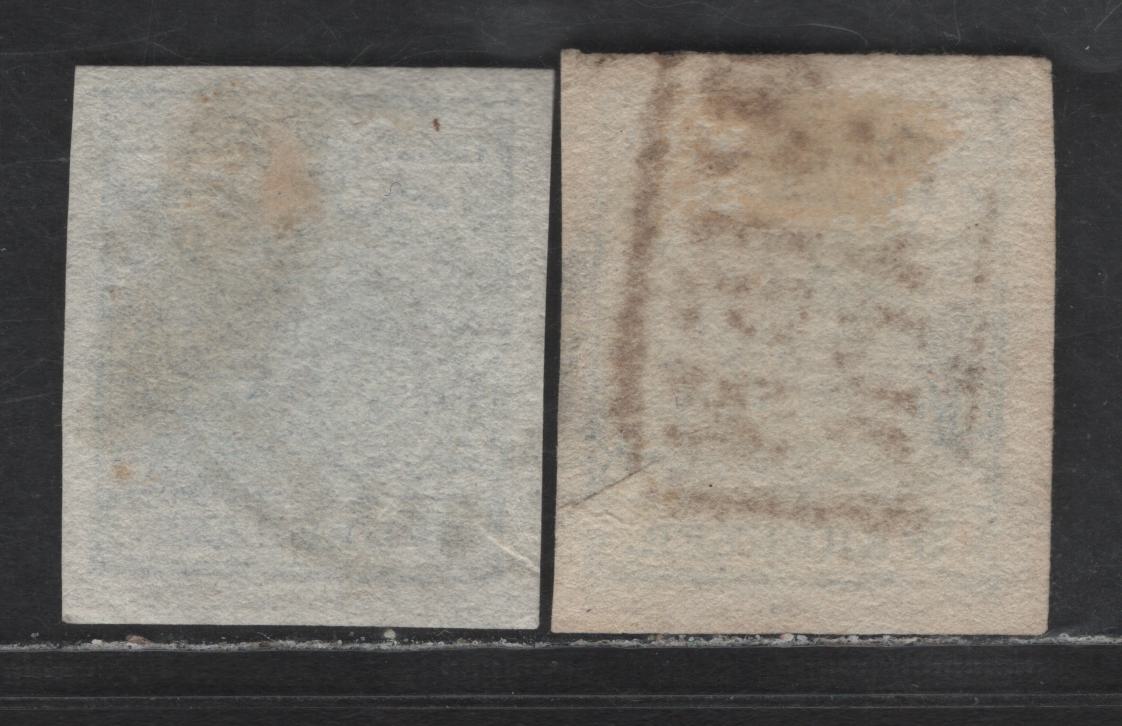 2 very fine used imperf singles of the 9k deep blue & blue Coat of Arms from the 1850 Coat of Arms Issue, handmade paper, type ii.