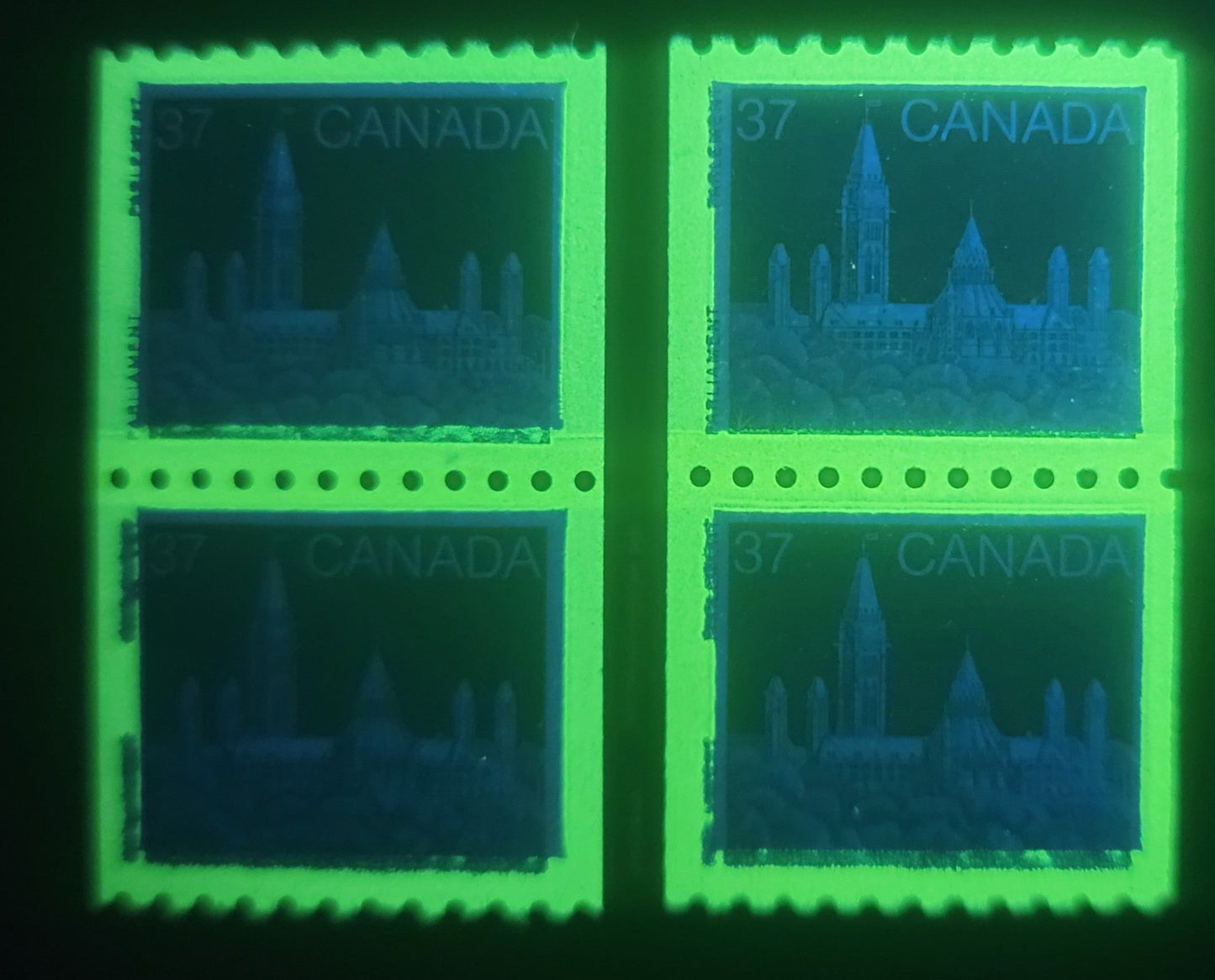 Lot 150 (C) Canada #1194var 37c Blue Parliament Buildings, 1988-1991 Mammal & Architecture Issue, A VFNH Coil Pair On DF Peterborough Paper Showing Horizontal Tagging Shift In Which Taggant Appears Between Inscriptions