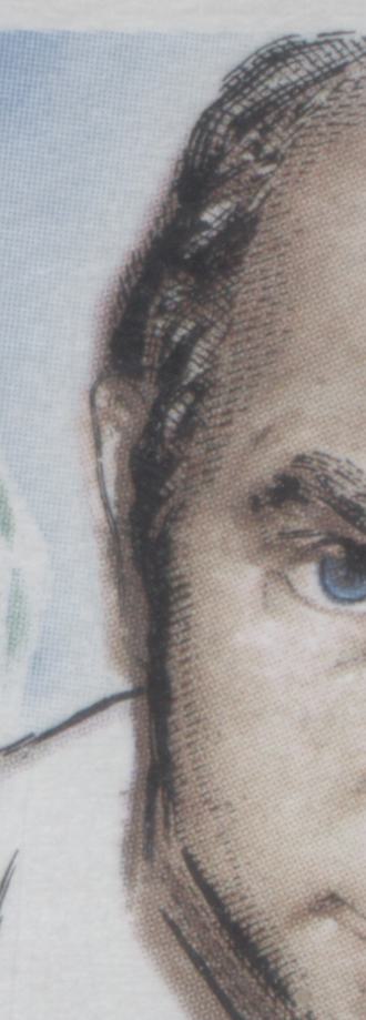 A VFNH horizontal pair of the 39c multicoloured Norman Bethune In Canada & China from the 1990 Norman Bethune Issue DF Peterborough paper, showing significant upward shifts of the engraving. The vast majority of stamps from this issue have good alignment of the engraving and lthography. Significant shifts generally affect the pupils and the outline of the ear on the Bethune in Canada design, and the top of the head on the Bethune in China design. On one of these pairs the pupils are shifted upward and to the right, and on the other pair the shift is upward and to the left. The lack of precise alignment makes the detail of the portraits appear blurry and almost doubled.