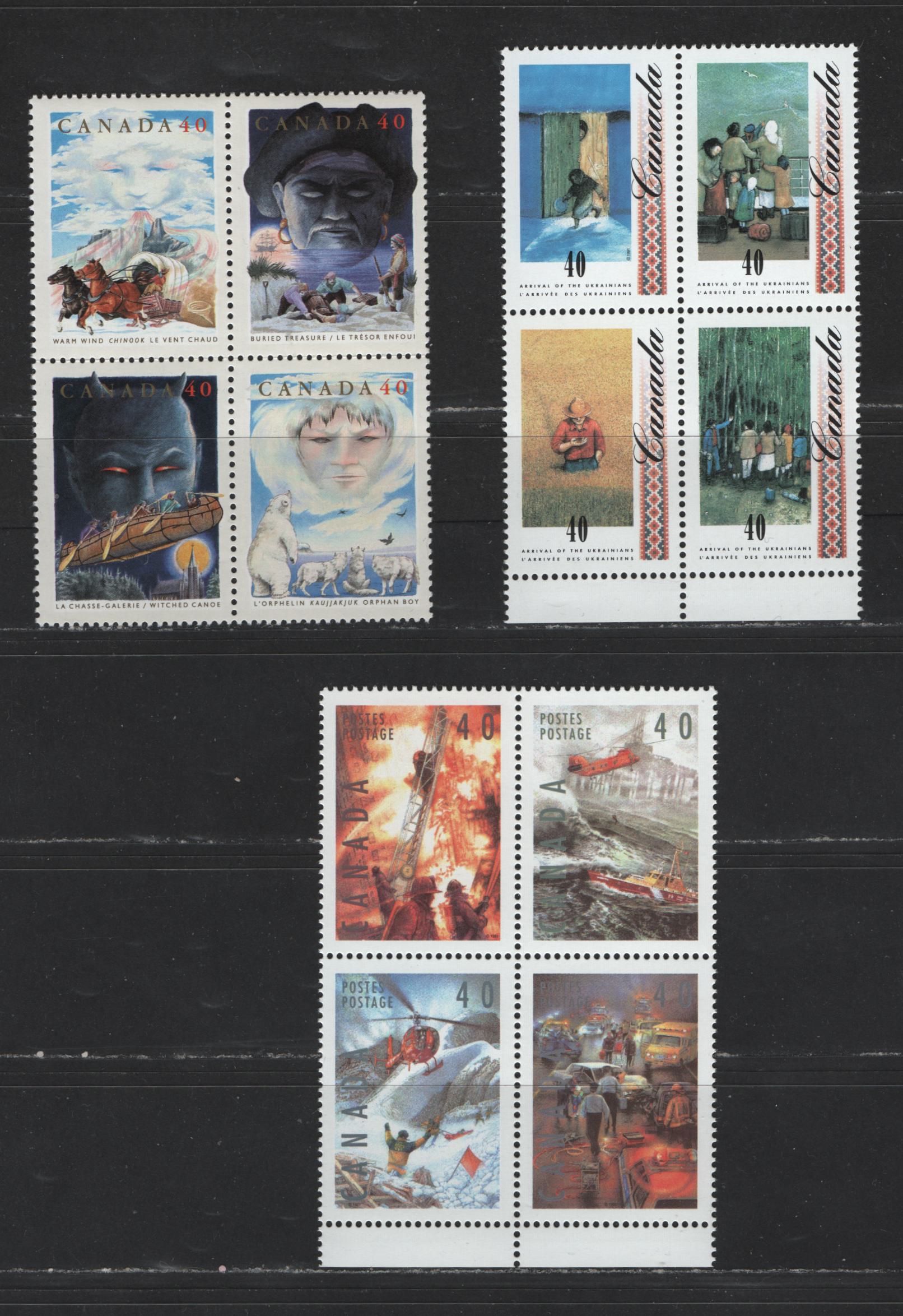 Canada #1329a, 1333a, 1337a 40c Multicoloured Shipboard - Buried Treasure, 1991 Arrival Of Ukranians - Folklore Issues, 3 VFNH Se-Tenant Blocks On DF/DF Harrison Paper & NF/DF Coated Papers Papers