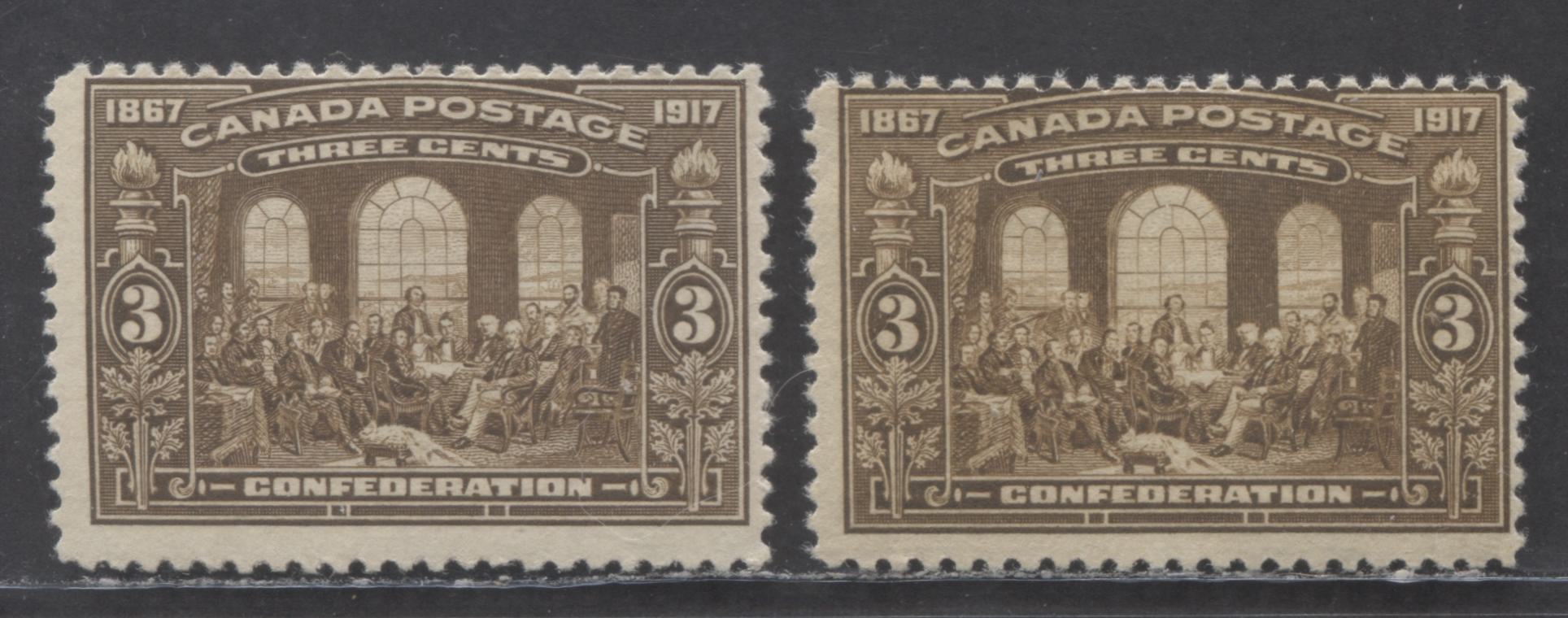 Canada #135,i 3c Brown & Dark Brown Fathers Of Confederation, 1917 50th Anniversary Of Confederation Issue, 2 VG/FOG Singles