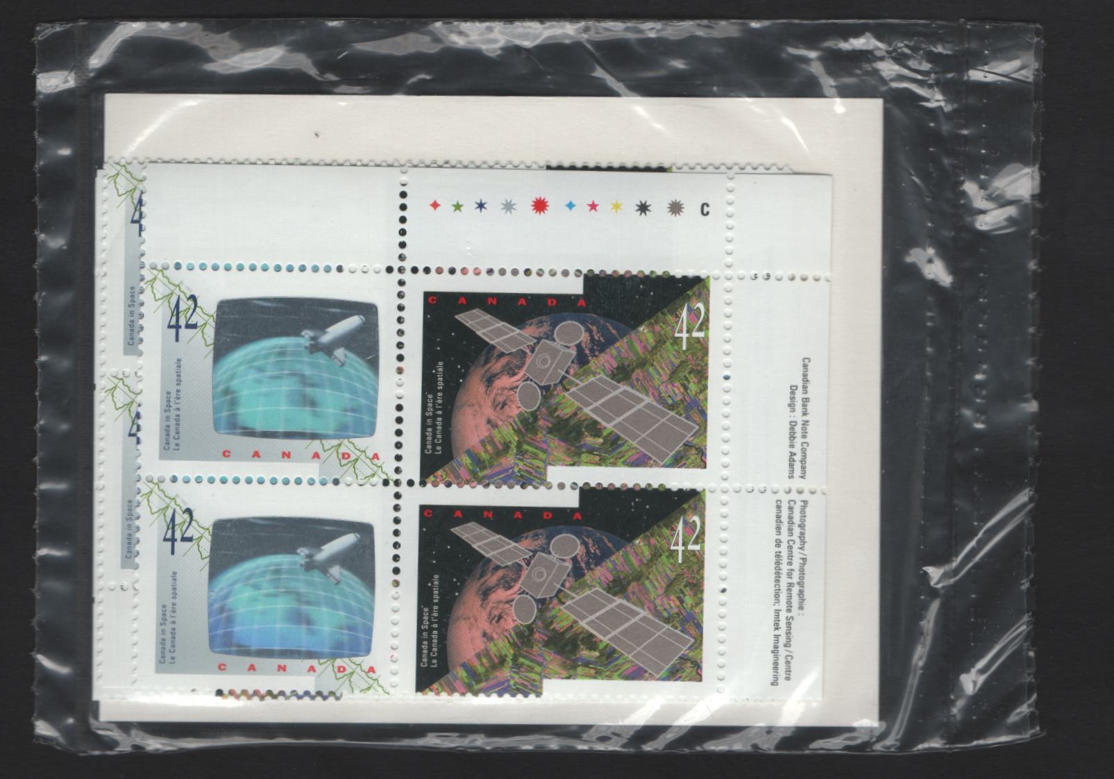 Canada #1442a 42c Multicoloured Anik E2 Satellite & Astronauts Achievements, 1992 Canada In Space Issue, A VFNH Sealed Pack of Inscription Blocks Type 4 DF2 Blue & White Cardboard Insert, DF1/DF2 Coated Papers Paper
