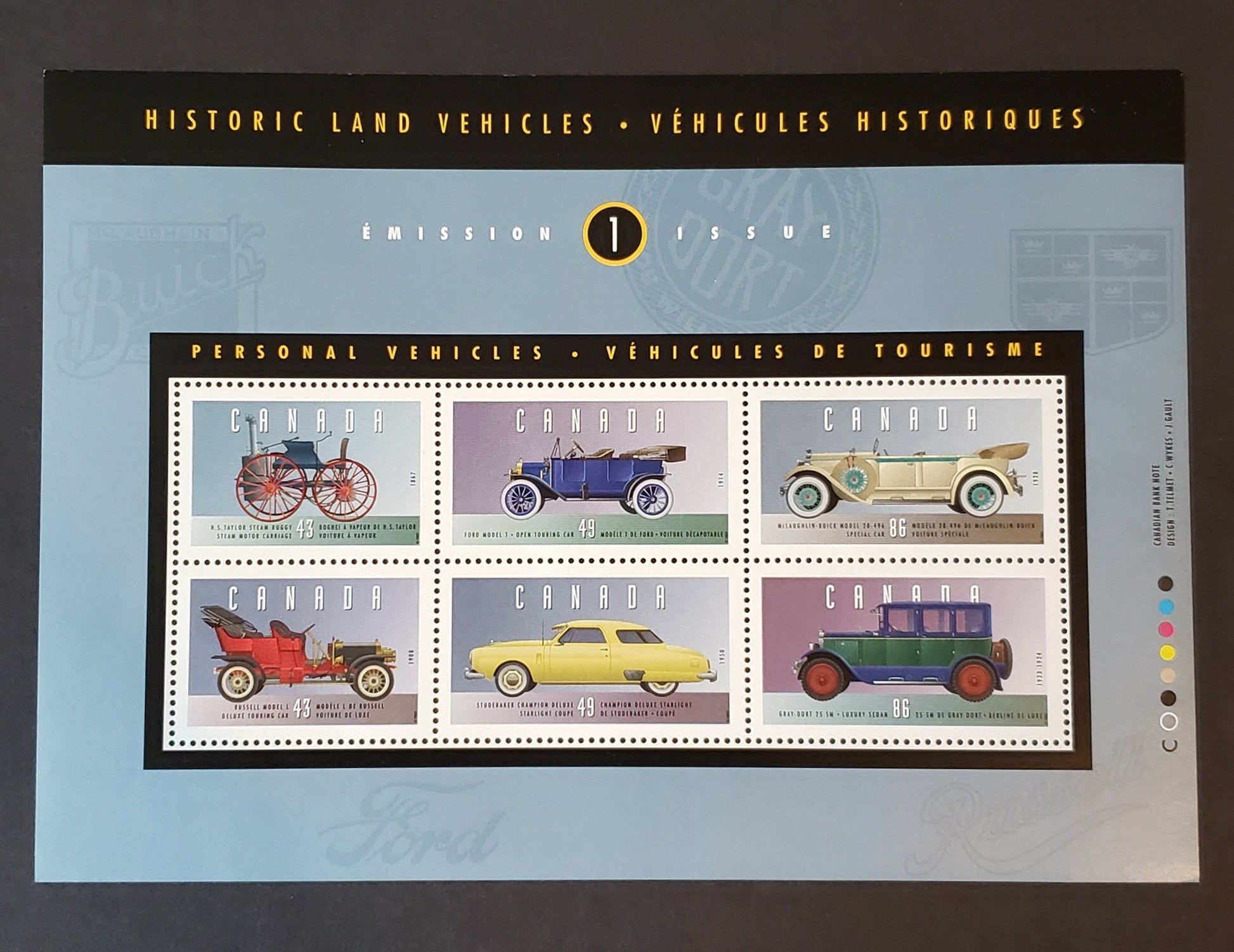 Canada #1490 43c-86c Multicolored H.S. Taylor Steam Buggy-Gray-Dort Model, 1993 Historic Land Vehicles, A VFNH Souvenir Sheet Of 6 On NF/NF Coated Papers