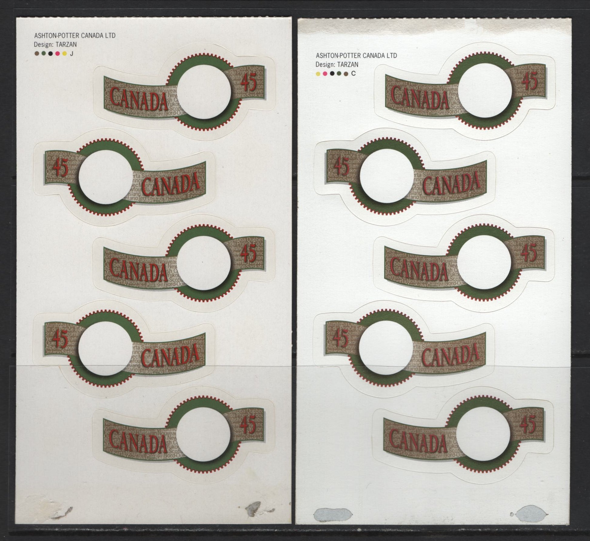 Canada #1568-1569i 45c Multicoloured Quck Stick , 1995 Greetings Issue, 2 VFNH Lower Booklet Pane Of 5 On DF Coated Papers Paper & HB JAC Paper