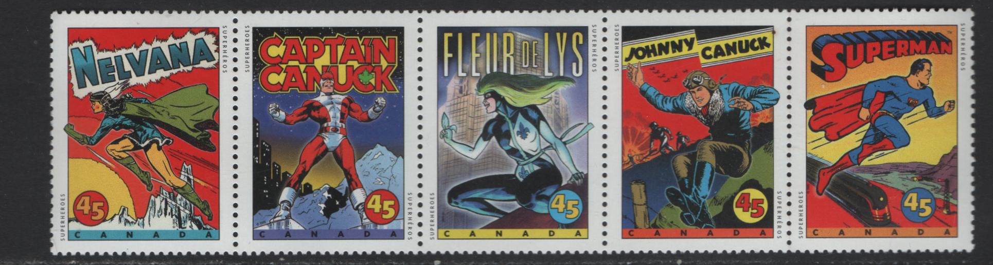 Canada #1583a 45c Multicoloured Superman - Fleur De Lys, 1995 Comic Book Superheroes Issue, A VFNH Se-Tenant Strip Of 5 On DF1 Coated Papers Paper
