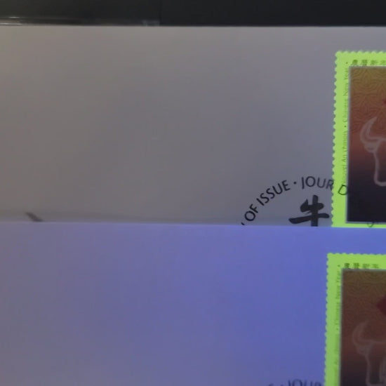 3 VF Canada Post FDC's of the 45c multicoloured Ox & Chinese Symbol from the 1997 Year Of The Ox Issue franked with singles & souvenir sheet, DF & MF envelopes, souvenir sheet is on MF Peterborough paper. The souvenir sheet appears to be printed on the better MF Peterborough paper and is on a DF envelope. The single stamp covers are on DF and MF envelopes.