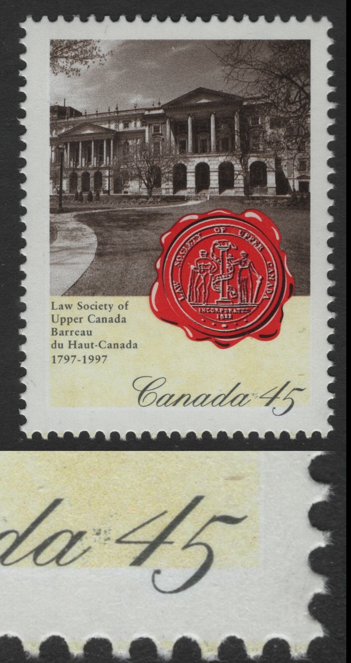 Canada #1640var 45c Multicoloured Osgoode Hall, 1997 Law Society Of Upper Canada, A VFNH Single Showing Smudge Between "Canada" & "45"