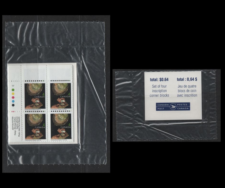 Canada #1676 4c Multicoloured Oyster Farming , 1999-2007 Traditional Trades Definitives, A VFNH Sealed Pack of Inscription Blocks Type 7B DF Blue & White Cardboard Insert