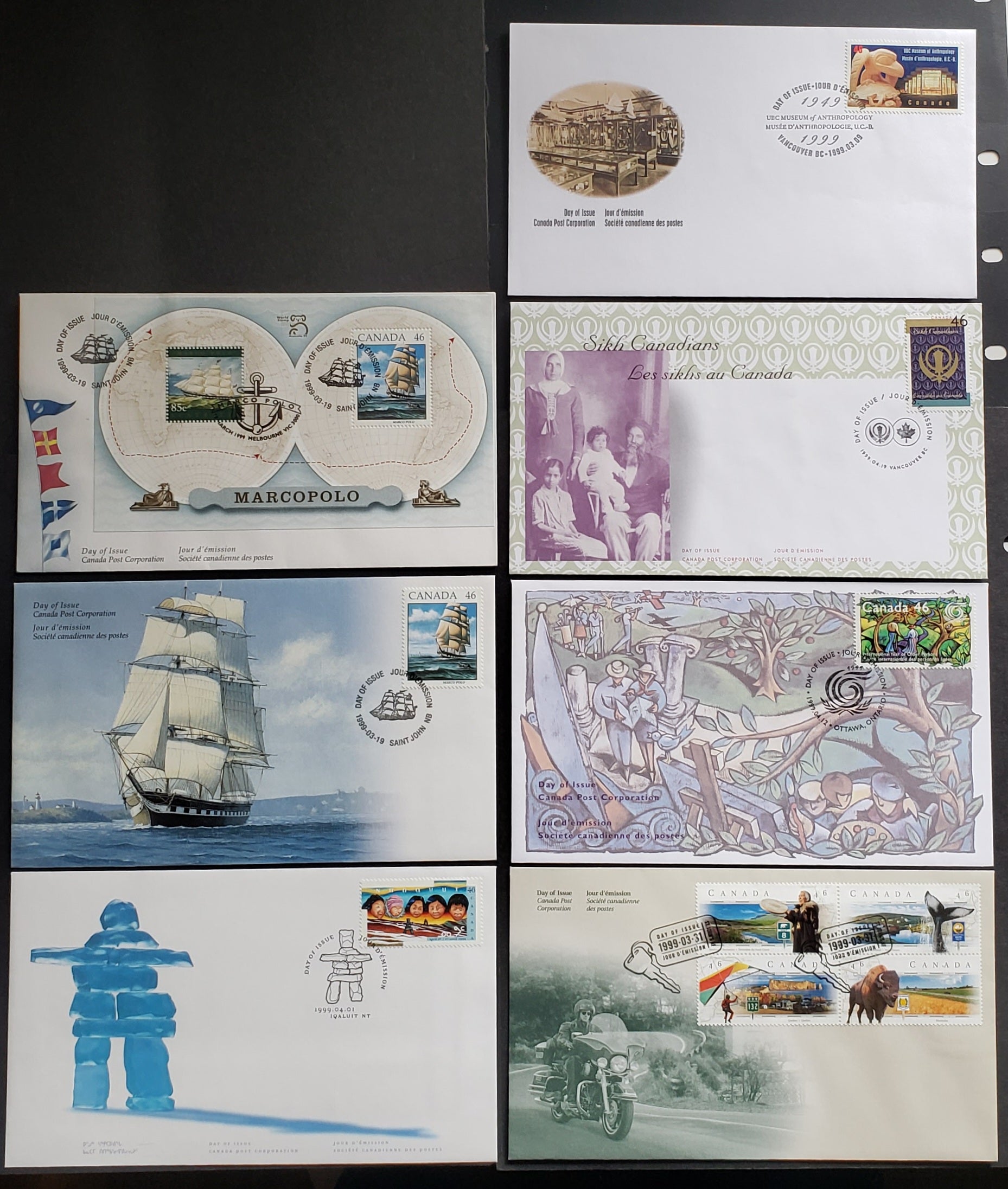 Canada #1778-1786, 1779a 46c Multicolor 1999 Museum Of Anthropology - Sikhs Issues, 7 Canada Post FDC's Franked With Singles & Block, Approx 42,000 Of Each Issued, Cat. Value $16.4