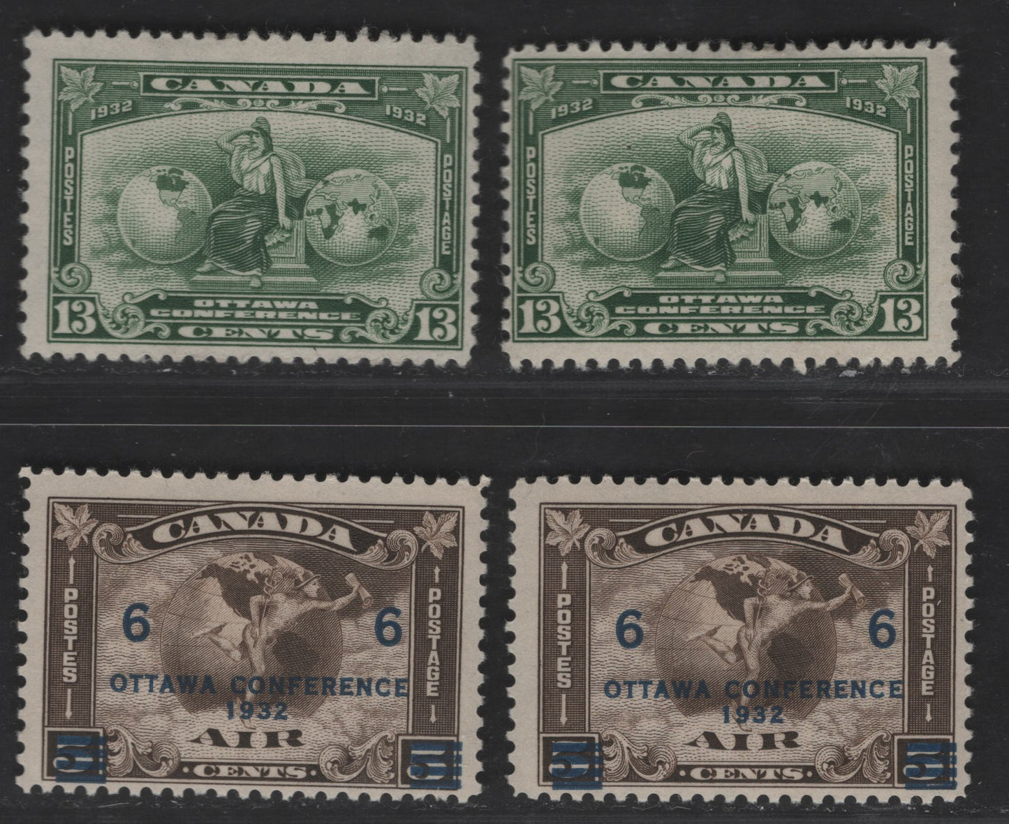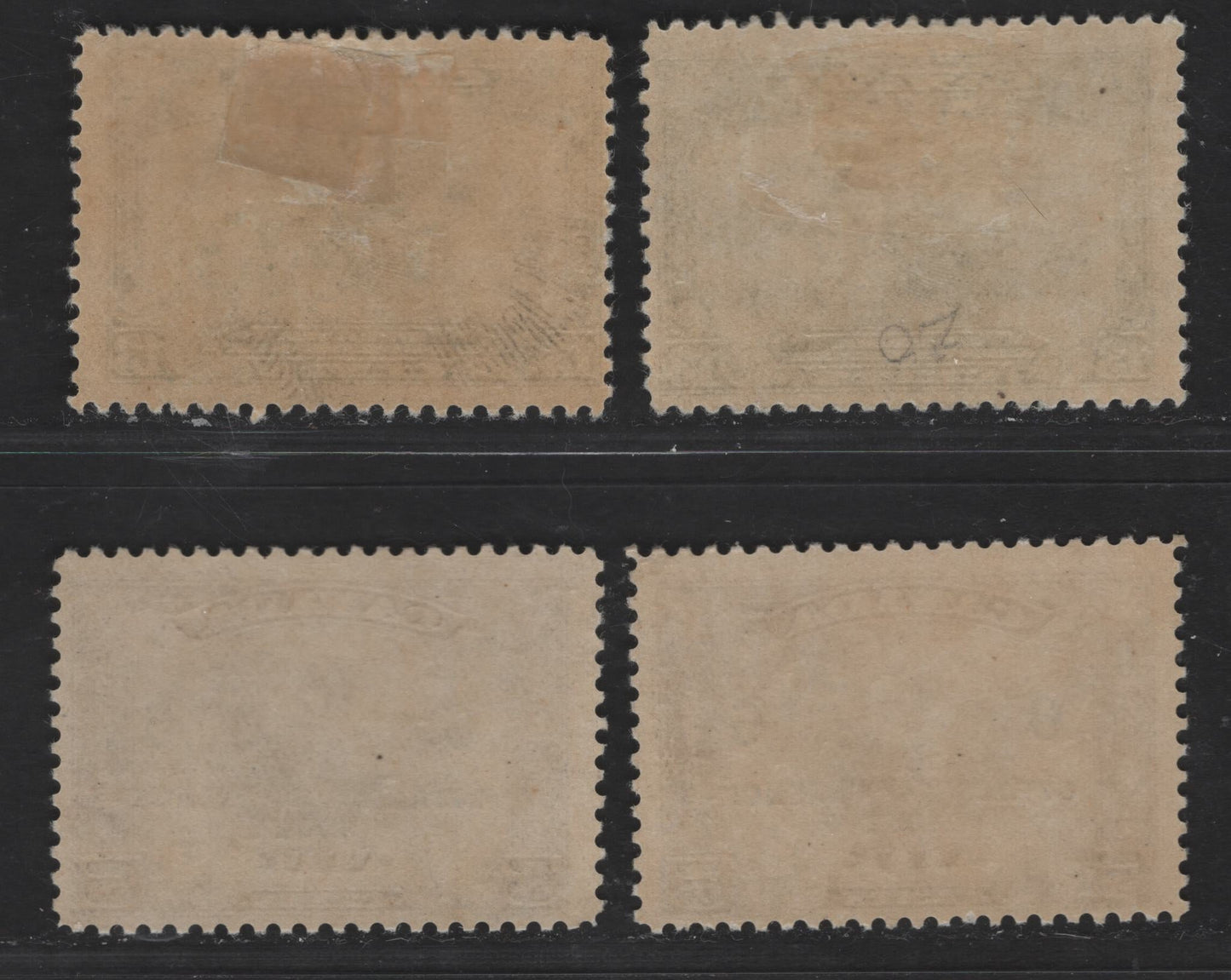 4 fine OG singles of the 13c, 6c on 5c olive brow, deep olive brown, green & deep yellow green Mercury & Globe & Britannia from the 1932 Ottawa Economic Conference Issue cream & yellowish cream semi-gloss gums. Both C4's have semi-gloss cream gum. The 13c green has satin cream gum, and the deep yellowish green is on paper with deep yellowish semi-gloss gum.