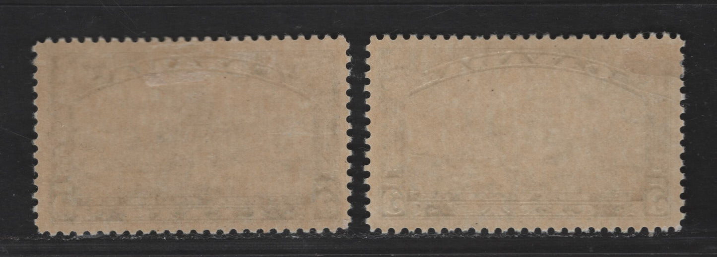 2 VFOG singles of the 5c deep dull blue, deep blue Royal William from the 1933 Royal William Issue deep yellowish cream semi-gloss gum.