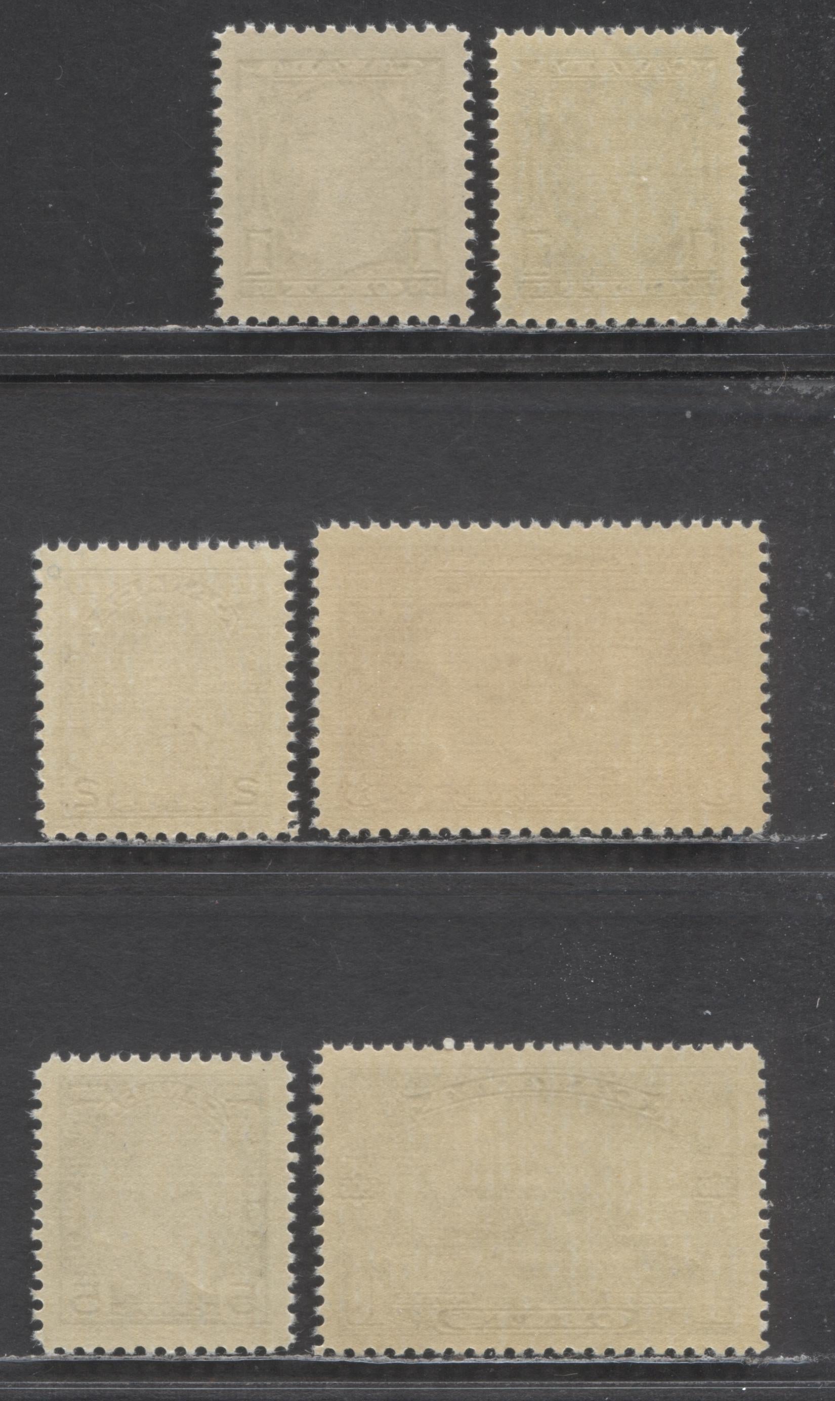 Canada #211-215 1c-10c Green-Blue Princess Elizabeth - Windsor Castle, 1934 KGV Silver Jubilee Issue, 6 VFNH Singles With White & Cream Papers For The 1c